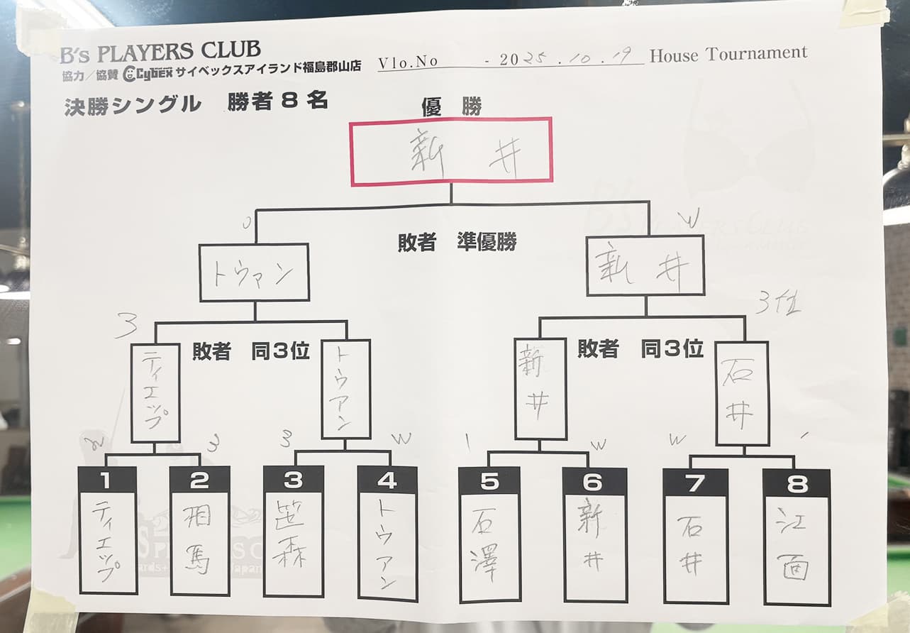 2025年10月19日 ハウストーナメント写真をご覧ください 2025年8月24日 ハウストーナメント写真をご覧ください 2025年6月15日 ハウストーナメント写真をご覧ください 2025年4月13日 ハウストーナメント写真をご覧ください House tournament 2024.cybex koriyama 2025年2月16日 ハウストーナメント写真をご覧ください I send the play of adult Bs players Club ビーズプレイヤーズクラブ オフィシャルEWBサイトヘようこそ billiardとバスフィッシングを愛する「撞球黒鱒」大人の達人倶楽部です